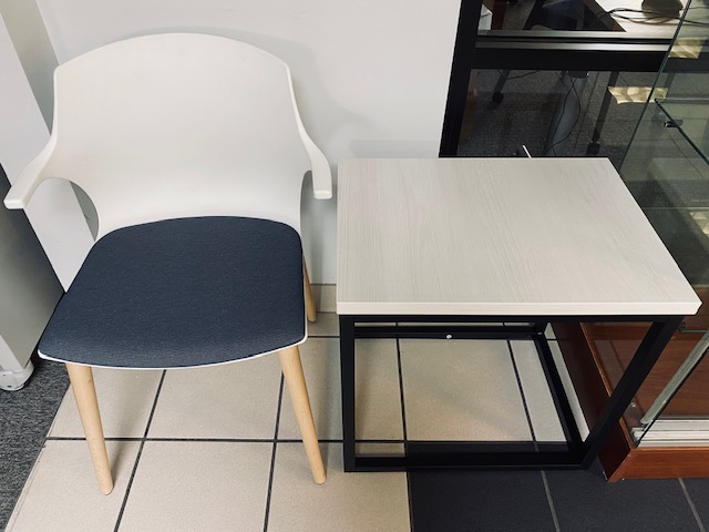 Furniture image Used White Side Chair with Gray Seat & New Side Table New or Used New Furniture Category: Side Tables