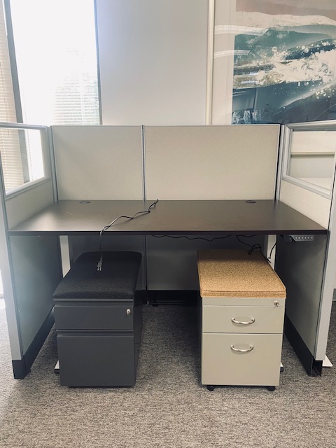 Furniture image Used Adjustable Height Table Desk & Cube & Cushion Top Mobile File Pedestals New or Used Used Furniture Category: Desk Examples